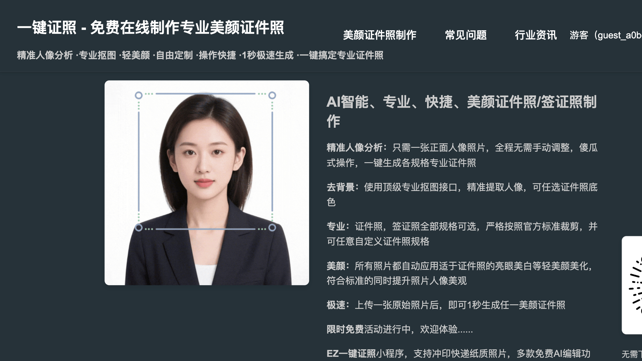 免费在线制作美颜证件照签证照 、AI智能换底色|专业标准裁剪、自定义尺寸证件照